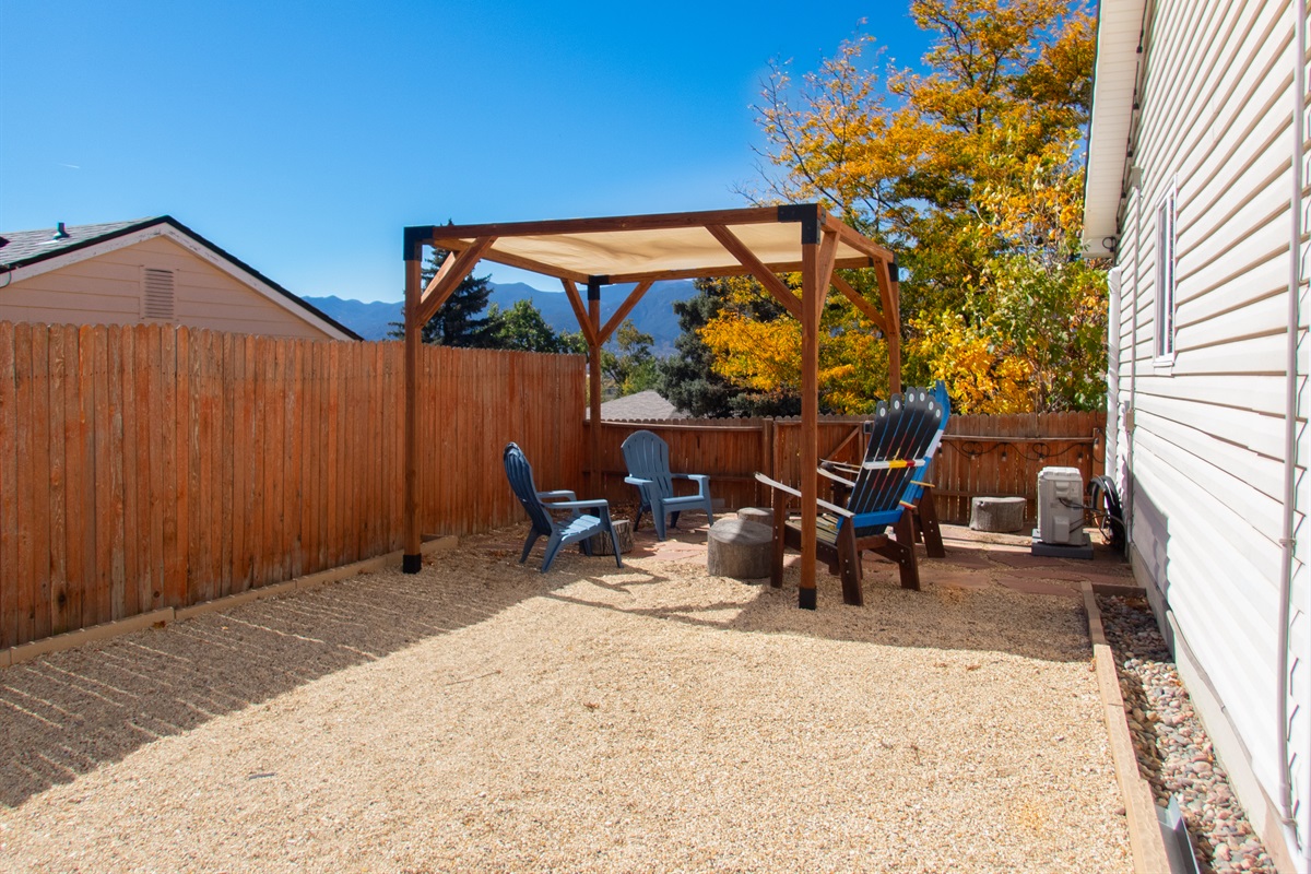 One notable feature is the electric fireplace with heat, providing a cozy atmosphere for relaxation, especially during colder seasons. The outdoor space offers stunning mountain views, providing a picturesque backdrop for guests to enjoy. The property's location is conveniently situated, being just minutes away from the Airport, Downtown area, Garden of the Gods, Pikes Peak, and the Air Force Academy.