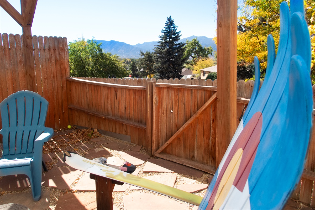 → Sitting area overlooking Cheyenne Mountain and pikes peak